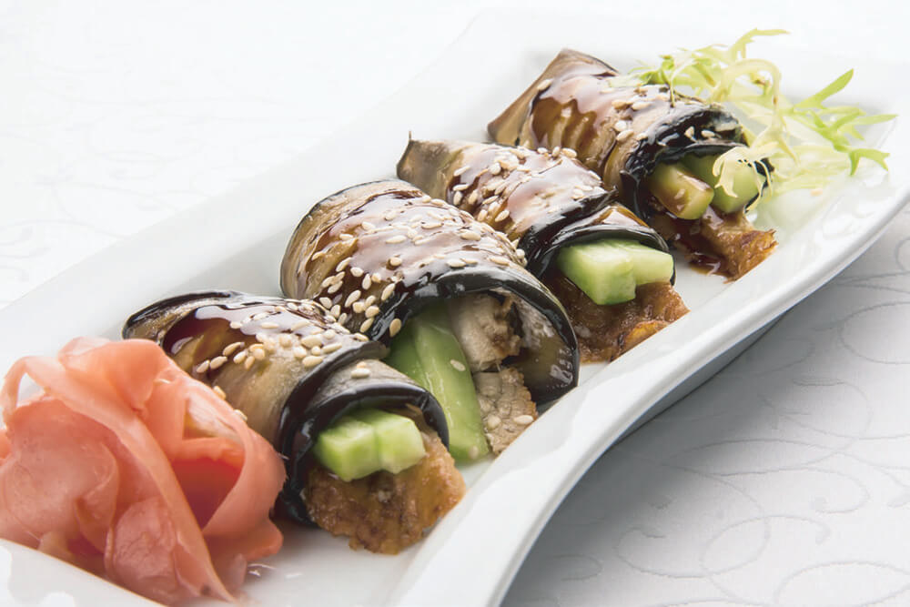 - Рулетики из баклажанов фаршированные угрем под соусом "Унаги" 200 229 грн