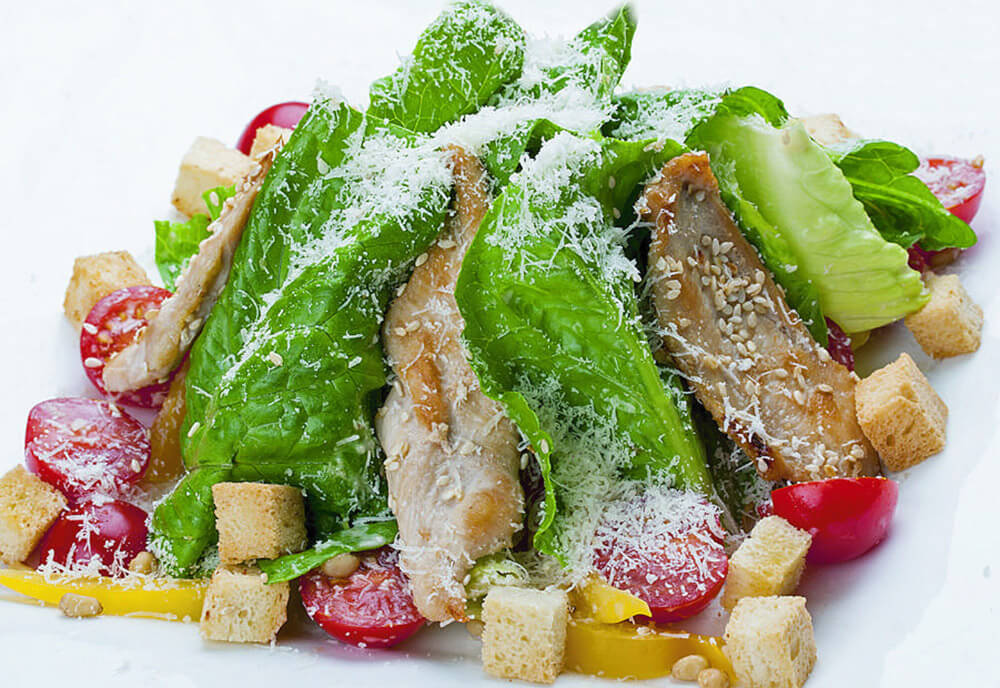 - Салат "Цезарь" с семгой жареной 280 209 грн